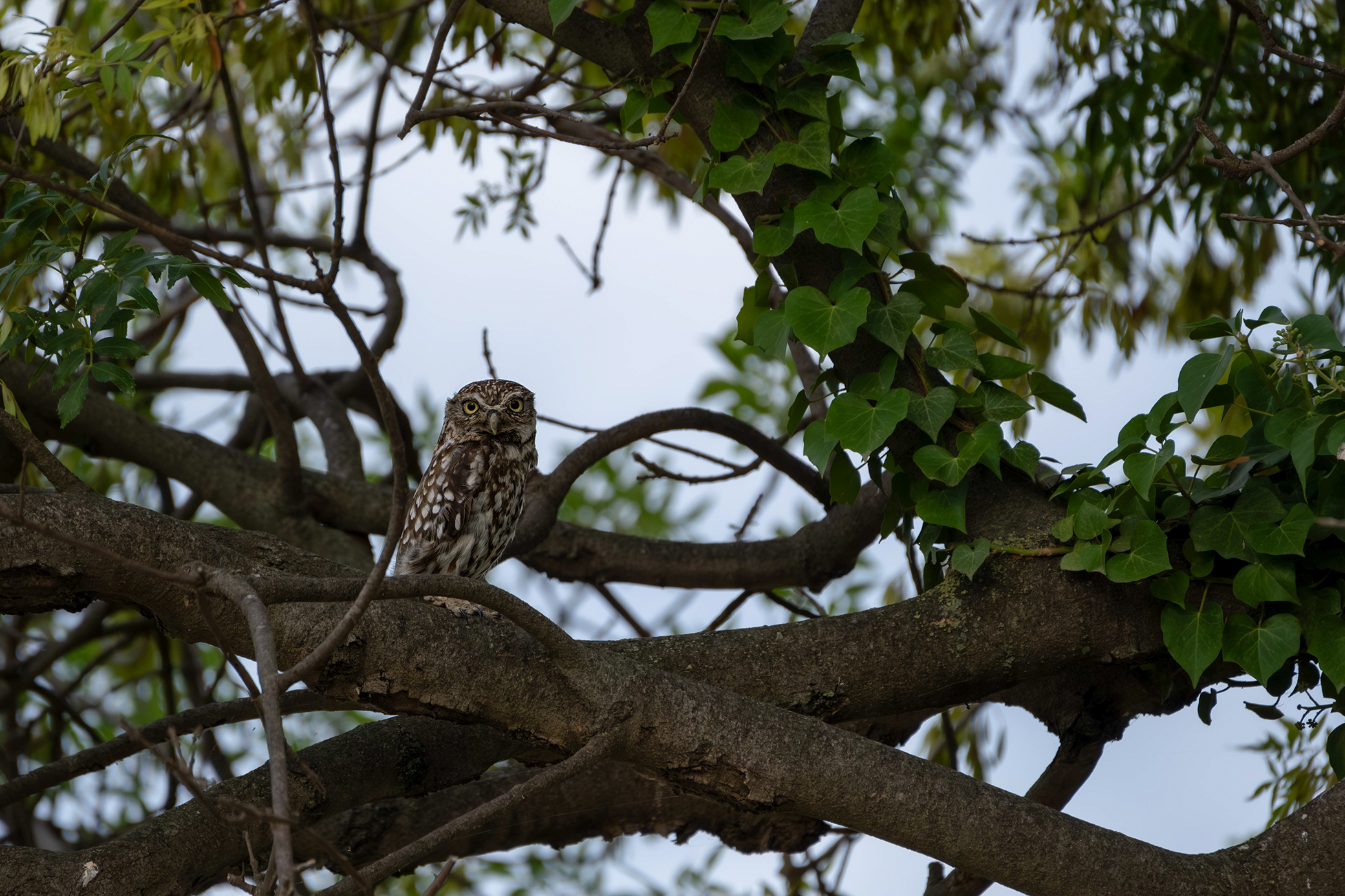 Cheveche d'Athéna dans son cadre de lierre