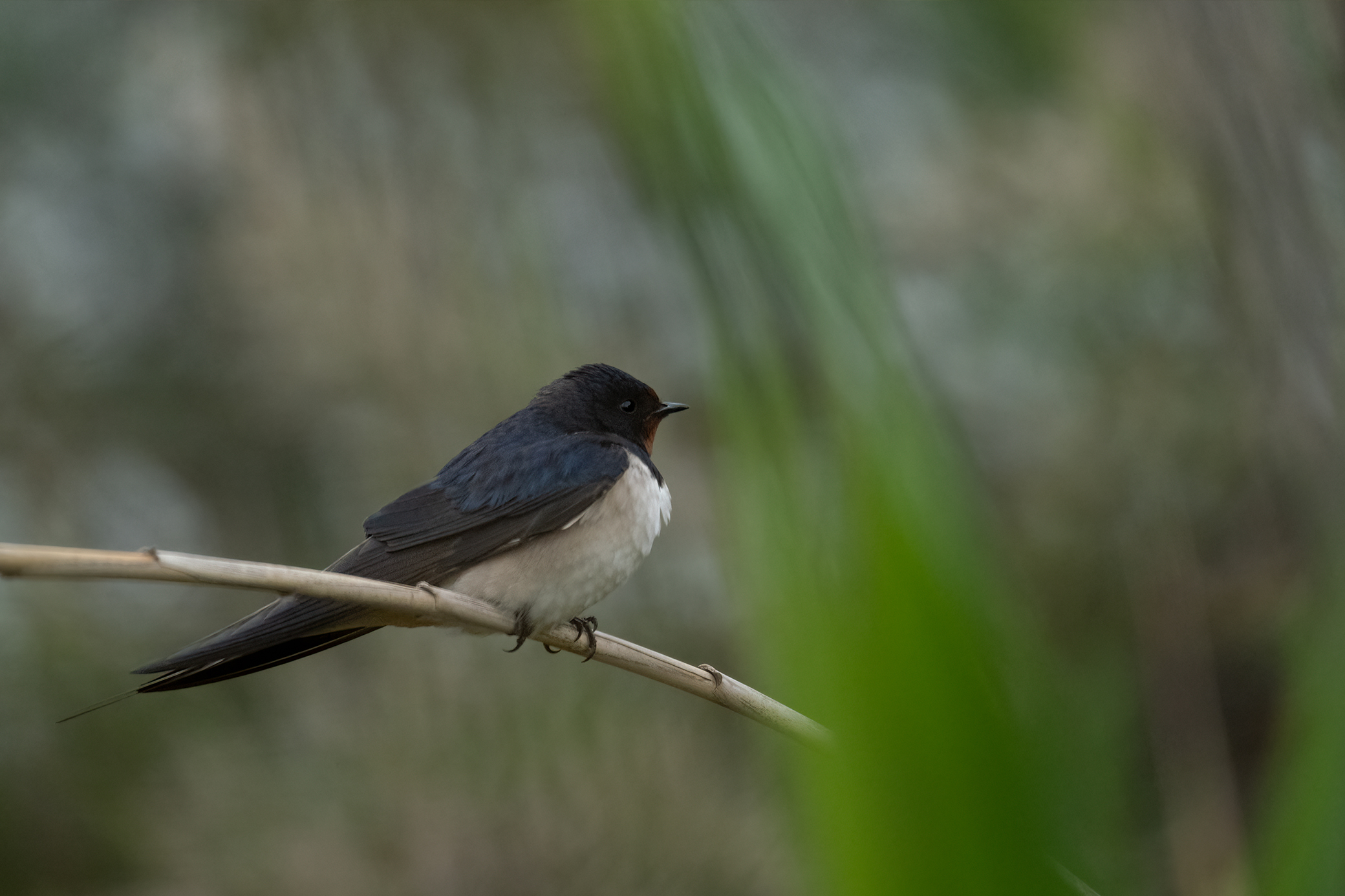 Hirondelle rustique sur son roseau