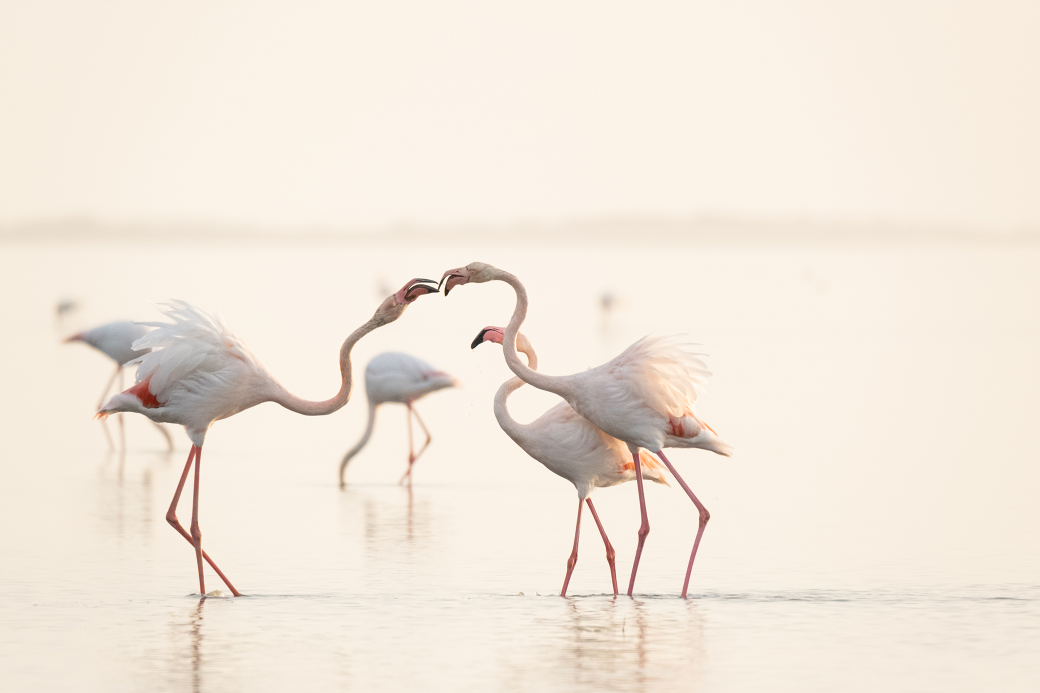 Prise de bec chez les flamants roses